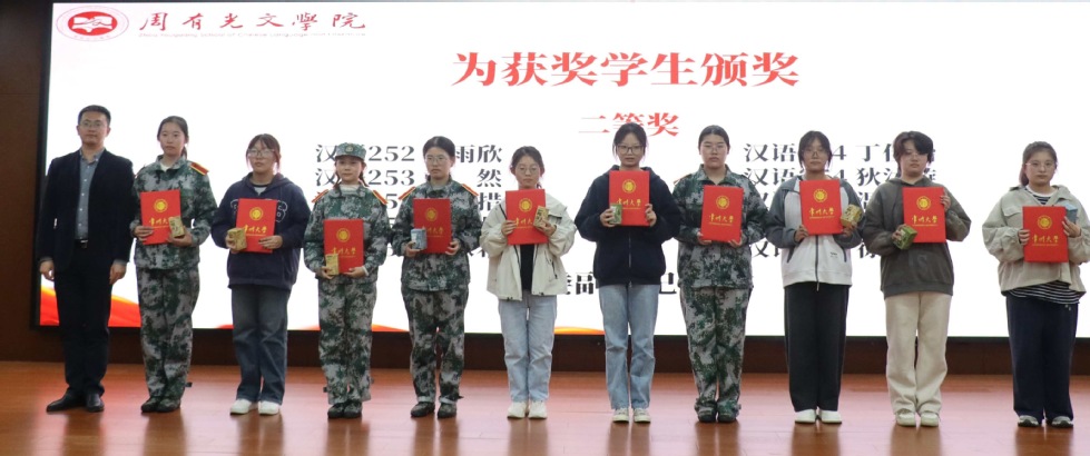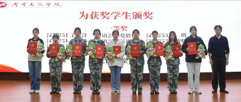 会上,为在首届“有光”征文大赛中脱颖而出的优秀学子进行了表彰。本次大赛2025 年新生全员参加比赛,共评选出奖项 66 名,其中一等奖19名、二等奖10 名、三等奖37名。在激昂的乐曲和全场热烈的掌声中,老师们为获奖同学颁发了荣誉证书,并赠送了常州城市文创精美礼品。获奖代表汉语254班仓若研同学分享了她从其他专业转入黑料网汉语言文学的心路历程,她表示汉语言文学专业最打动她的是文字与心灵的共鸣。葛金华向仓若研赠送了《文选译注》。