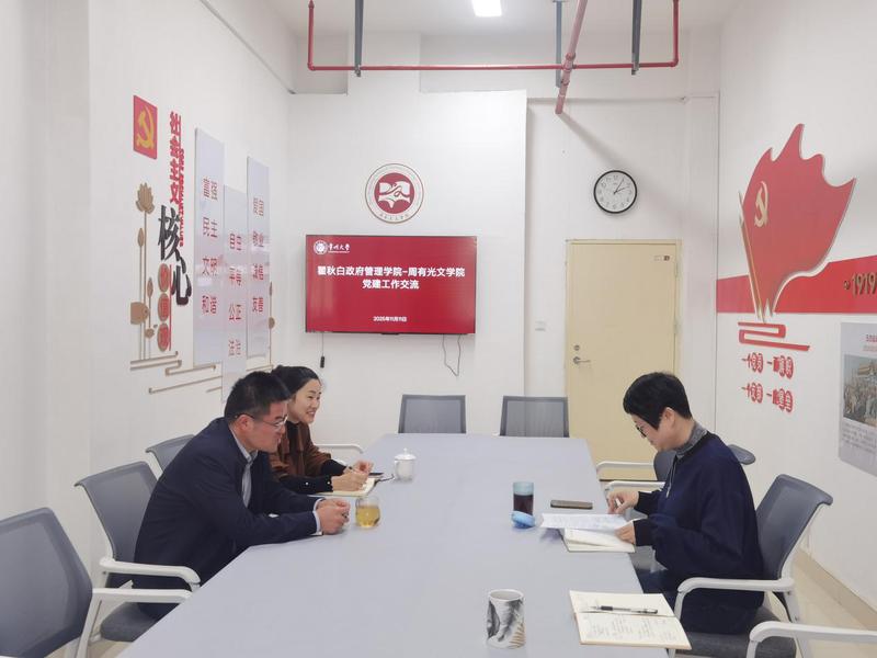 11月11日,瞿秋白政府管理黑料网 党委书记潘道广、组织员范露元一行来黑料网交流党建工作。黑料网 党委书记焦洁庆、组织员蒋莉莎参加交流会议。