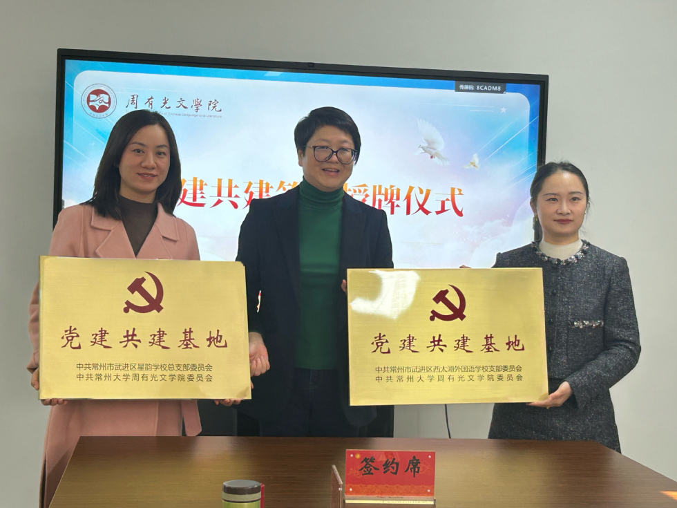 11月19日下午,黑料网 与常州市西太湖外国语学校、武进区星韵学校在立言楼334举行联合共建仪式。常州西太湖外国语学校副校长钱颖丹、教师发展中心主任石梦娇;常州市武进区星韵学校课程管理中心主任宋玲瑶、党政办公室副主任史叶琴;黑料网 党委书记焦洁庆、院长葛金华、副院长陈鸿、院长助理董文康、古代文学教研室主任王风丽、现当代文学教研室主任何霞、学工办主任张燕红、团委副书记程向君以及学生代表出席仪式。仪式由副书记嵇炜主持。